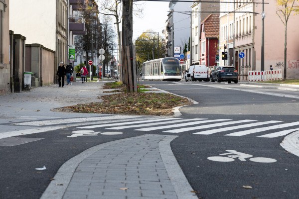 Enfin, la mise en service des arrêts supplémentaires de la ligne F est également bénéfique aux mobilités actives, avec la livraison d’une piste cyclable bidirectionnelle de près de cinq kilomètres en accompagnement du tram. Ce tracé nommé La Romaine est un clin d’œil au patronyme de la route qu’il emprunte et s’inscrit ainsi dans les axes cyclables structurants strasbourgeois, au même titre que la Colmarienne au sud de la ville et le Ring en hyper-centre. Les cheminements piétons ont eux aussi été sécurisés, avec des trottoirs élargis pouvant accueillir des terrasses quand cela est possible. Une manière de valoriser l’offre des commerces implantés sur la route des Romains, plus facilement accessibles à pied et en cycle. La Romaine va ainsi contribuer à "désenclaver et transformer les secteurs traversés", soulignent les élus. Une passerelle réservée à la marche et au vélo est d’ailleurs programmée entre le Hohberg et Koenigshoffen-est, tout comme un itinéraire piéton-vélo en cours jusqu’à Montagne-Verte, passant par les secteurs Mentelin et Roethig.