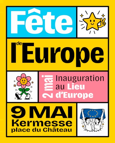La Fête de l’Europe est aussi l’occasion de se retrouver lors de la troisième édition de la grande Kermesse européenne organisée pour la journée de l’Europe, le samedi 9 mai de 13h à 18h30 Place du Château à Strasbourg. Le public est invité à partager un moment convivial au sein du village européen, animé par de nombreux partenaires mobilisés pour proposer une diversité d’activités. Les institutions européennes présentes à Strasbourg et de nombreuses associations engagées au quotidien pour faire vivre l’Europe sur le territoire feront découvrir leur travail de manière ludique. Fanfare, arts circassiens, spectacle musical et activités variées, adaptées à tous les âges, rythmeront cette journée placée sous le signe de la découverte et du partage.