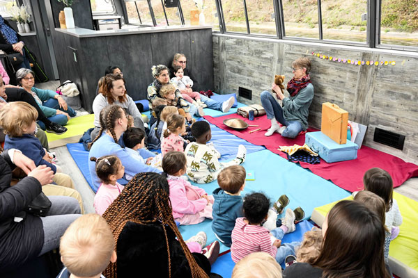 Dans le cadre de la clôture de l’année Capitale mondiale du livre, les crèches municipales, associatives et parentales, relais petite enfance et lieux d’accueil parents-enfants (Lape) de tout le territoire ont été invités à participer à six lectures sur l’eau de ce type. “Toutes les places ont été réservées en quelques heures et à bord, c’est un succès : les adultes comme les enfants profitent d’une petite bulle littéraire et d’une promenade insolite dans la ville”, se réjouit Juliet Vathelet, chargée de mission Lire notre monde.