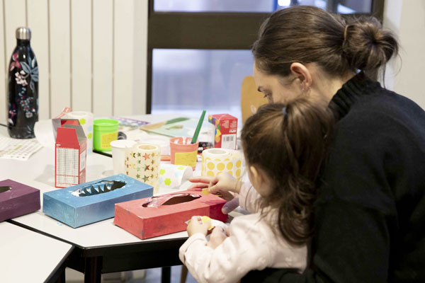 Une boîte à livres a par exemple été installée dans le hall de la Maison de l’enfance, où les familles peuvent emprunter des albums adaptés aux tout-petits. Des ateliers cuisine, confection de pâte-à-modeler maison ou encore fabrication de jouets en matériel de récupération sont aussi proposés aux familles. “Nous organisons aussi une sortie au parc, pour accompagner les parents à la découverte du quartier et de jeux simples à organiser”, complète la directrice.