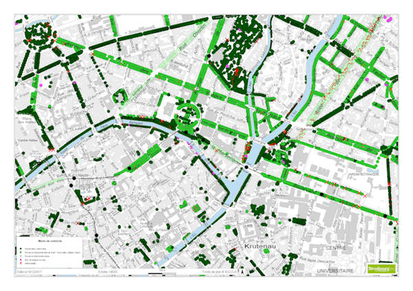Depuis quelques années, les recherches académiques ont mis en évidence les services écosystémiques des arbres en ville comme l’amélioration du cadre de vie ; le maintien de la biodiversité ; la régulation de certains problèmes environnementaux, par ex. : l’infiltration des eaux de ruissellement, le stockage de CO2, le rafraichissement de l’air, etc.