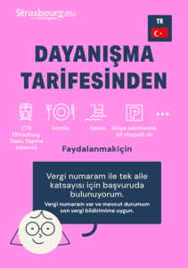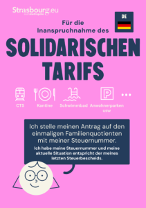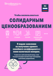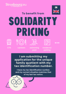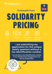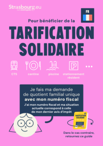 La Ville de Strasbourg et l'Eurométropole appliquent la tarification solidaire plutôt qu'un prix unique. Les tarifs changent en fonction de mes revenus selon un "quotient familial unique".