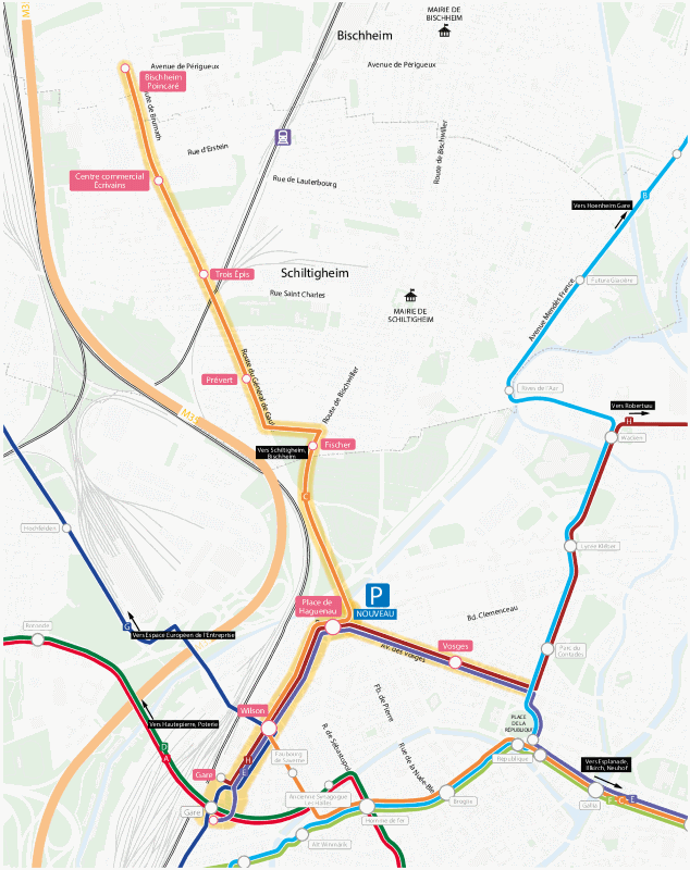 - Mieux desservir les quartiers : Schiltigheim et Bischheim font partie des communes les plus denses de la métropole. Assurer une meilleure desserte, notamment dans le cadre du projet de rénovation urbaine du quartier des Écrivains, répond à un besoin des habitants.