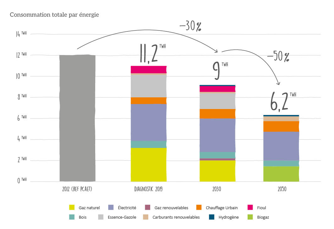 Diviser par deux nos consommations d’énergie territoriales d’ici 2050 avec une baisse de 30% en 2030 (par rapport à 2012),